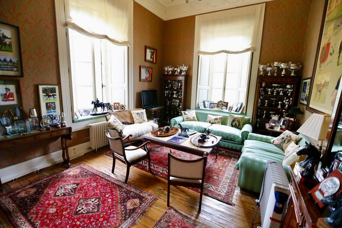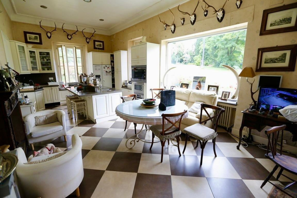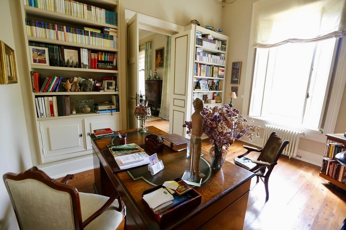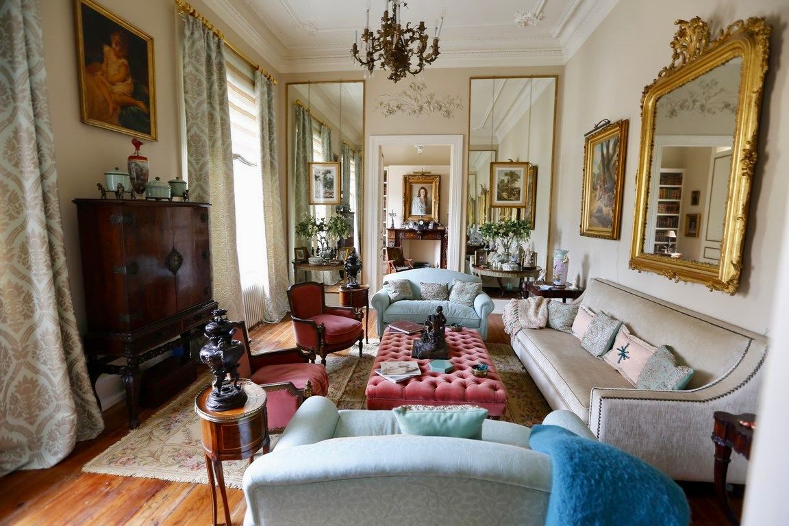 Das großzügige Entrée mit seiner Jugendstil-Holztreppe, der lichtdurchflutete Salon, das repräsentative Esszimmer sowie mehrere gemütliche Salons mit Kamin vermitteln den Charme vergangener Epochen. Jeder Raum öffnet sich mit großen Fenstern in den Garten und bietet traumhafte Ausblicke auf das grüne Paradies.