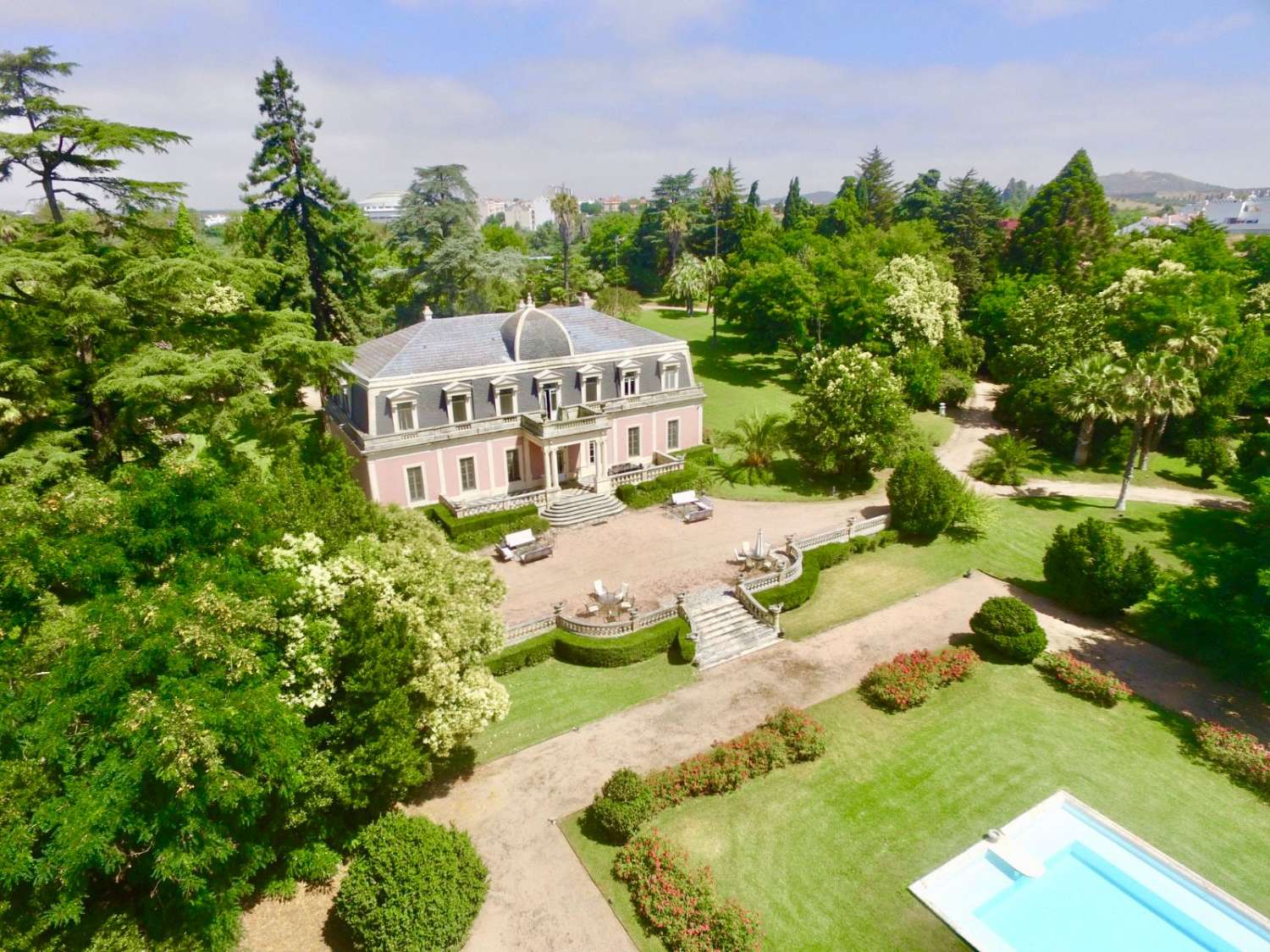 Im Herzen des Parks erhebt sich ein prächtiger Palacete im französisch-eklektischen Stil, der 2010 aufwendig und stilvoll renoviert wurde. Dabei wurde das historische Flair des Hauses liebevoll bewahrt, während moderner Komfort behutsam integriert wurde.